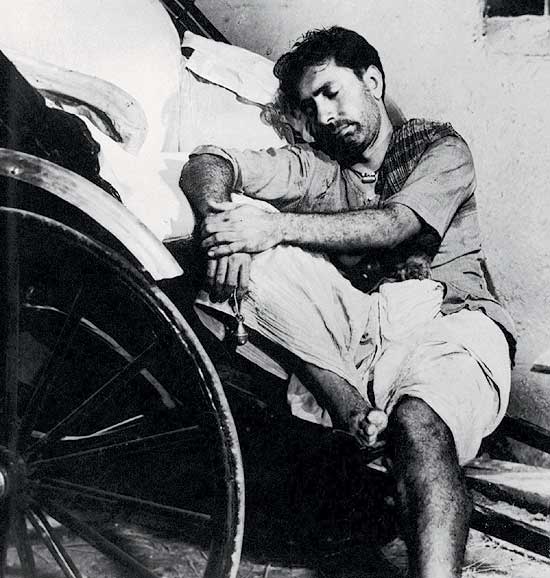 With no way to pay the money, Shambu temporarily shifts to the big city of Calcutta where he has heard the money is just floating in the air ready to scoop up. His son tags along.  Of course reality is nothing like that and Shambu has to live in a slum and work as a rickshaw driver for pennies a ride. The boy also works, as a shoe shiner. The rest of the film shows the ups and downs suffered by the family both in the city and the village, although everyone survives ultimately (spoiler alert) they lose their money, their land and their home.